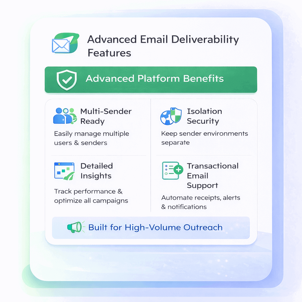 - DKIM, SPF, and DMARC fully configured for maximum inbox placement